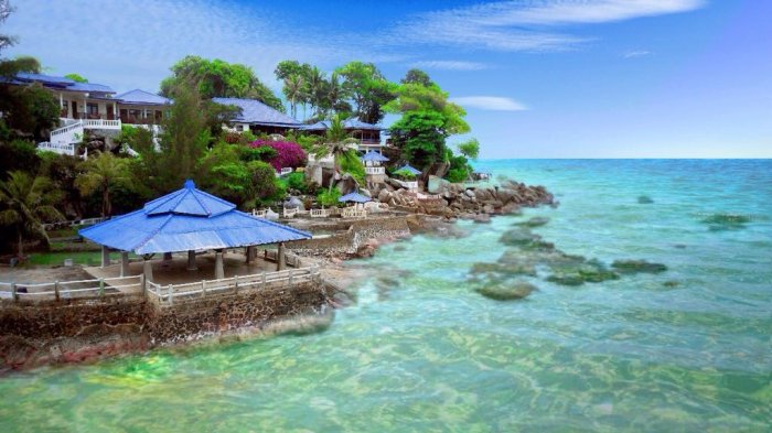 The tourist area of Tanjung Pesona Bangka has a four-star hotel. Tanjung Pesona Beach Resort or Hotel Tanjung Pesona is located on a beautiful beach. Tanjung Pesona also has water sports. Various water sport facilities such as Cano, Banana Boat, Jet Sky, Fishing At Sea With Speedboat, Fishing at Coral & Speedboat Tour, are available in this area. Water sport facilities at Tanjung Pesona Beach Resort are rented at a fairly cheap and affordable price.