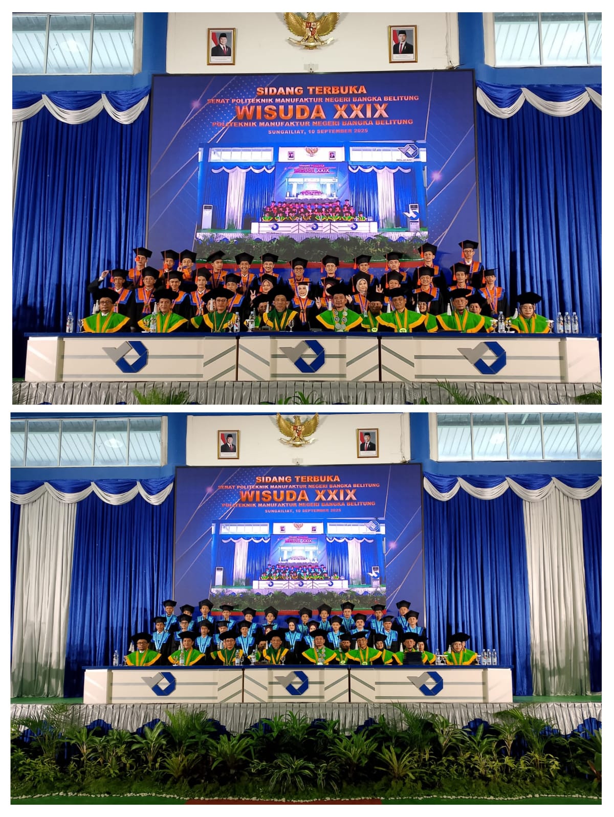 The State Manufacturing Polytechnic of Bangka Belitung (Polman Babel) held its 29th Open Senate Graduation Session in the Campus Hall on Wednesday, September 10, 2025. The event was a joyous occasion, attended by the leadership, lecturers, invited guests, and families of the graduates.