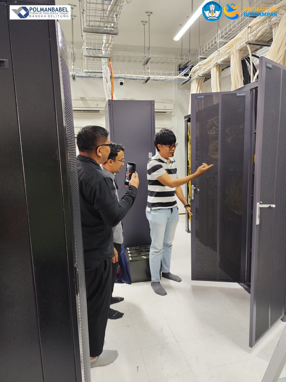 Three Polman Babel lecturers, Riki Afriansyah, M.T., Firdaus, M.Kom., and Muhammad Iqbal, M.Eng., attended the visit. The goal was to strengthen the lecturers' competency in the telecommunications industry and explore opportunities for ongoing collaboration.